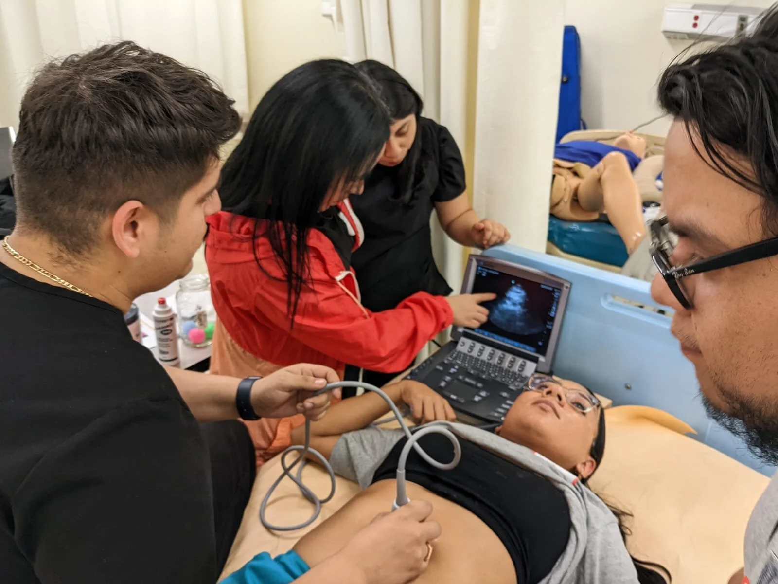 Nuestro programa de UPA longitudinal tiene una duración de un año, consta de un componente asincrónico, en el cual utilizamos las clases y recursos de UPAndo para preparar los diferentes temas. El componente práctico se lleva a cabo en talleres mensuales de 5 horas, donde revisamos y practicamos la técnica de adquisición de imágenes para diversas aplicaciones de UPA. Lxs instructores de las estaciones son participantes de UPANorth que se han destacado por su experiencia y dedicación. La Dra. Eva Tovar Hirashima, quien cuenta con una subespecialidad en UPA y es co-fundadora de UPAndo, organiza los talleres y brinda mentoría tanto a lxs instructores en sus estaciones como a lxs participantes. Para afinar la destreza de interpretación de imágenes así como para hacer énfasis en la integración adecuada de UPA en las decisiones clínicas, llevamos a cabo sesiones mensuales de revisión de imágenes, lideradas por especialistas en UPA, en donde integrantes del colectivo comparten casos interesantes.